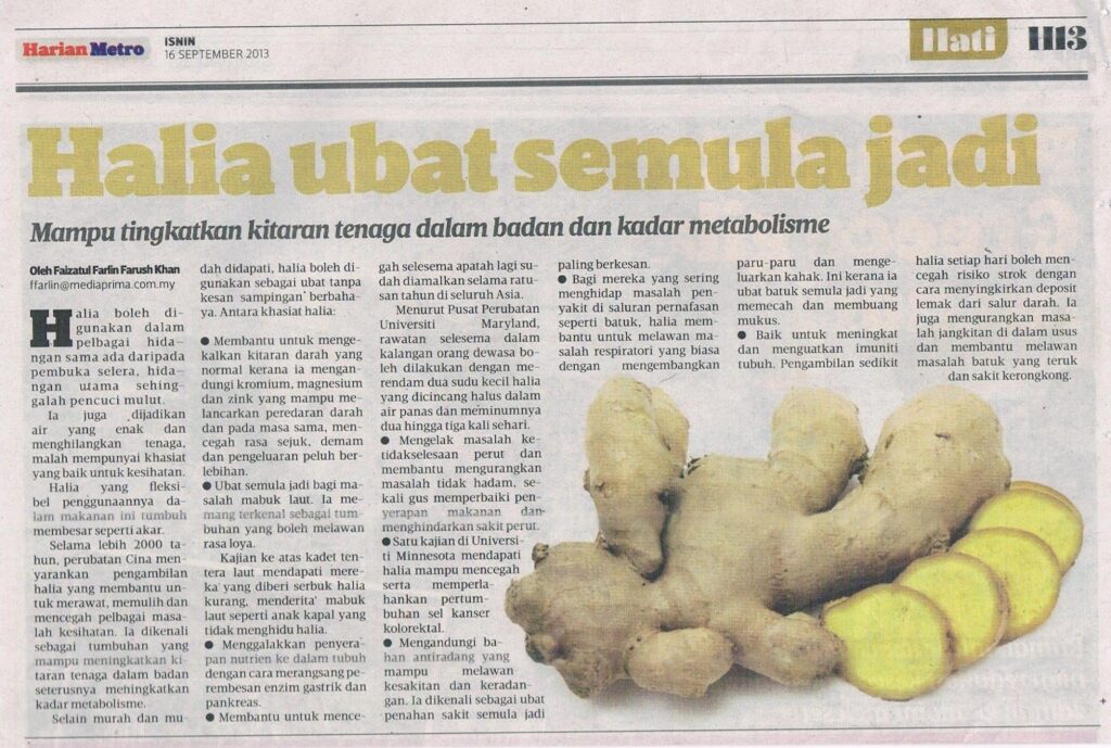 Akar halia merangsang peredaran darah ke kulit kepala. Terkenal dengan sifat anti-radang dan antiseptiknya, menyegarkan kulit kepala, mengurangkan kelemumur, dan membantu mengekalkan persekitaran kulit kepala yang sihat.