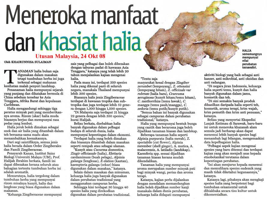 Halia mempunyai sifat antiseptik yang membantu mengelakkan perkembangan kelemumur yis serta bakteria semula jadi.