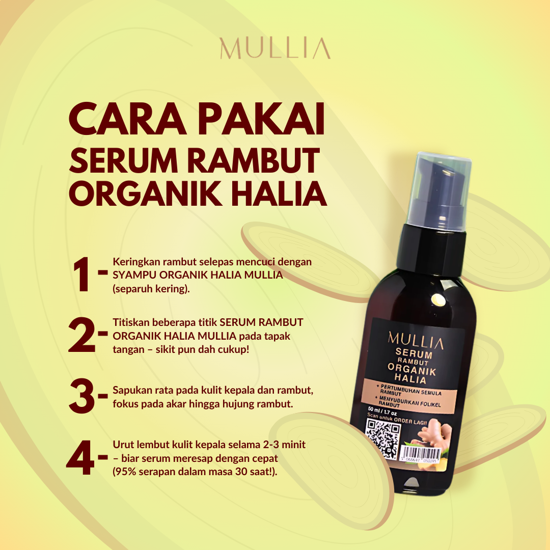 Satu botol syampu organik halia mengandungi 300ml dan satu botol serum organik halia mengandungi 25ml boleh pakai sehingga 2-3 bulan bergantung kepada kegunaan.